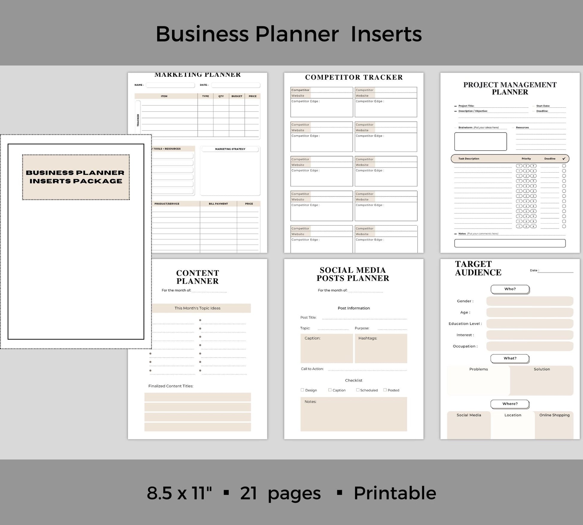 Business Planner Inserts Package, Instant Download, Printable Inserts