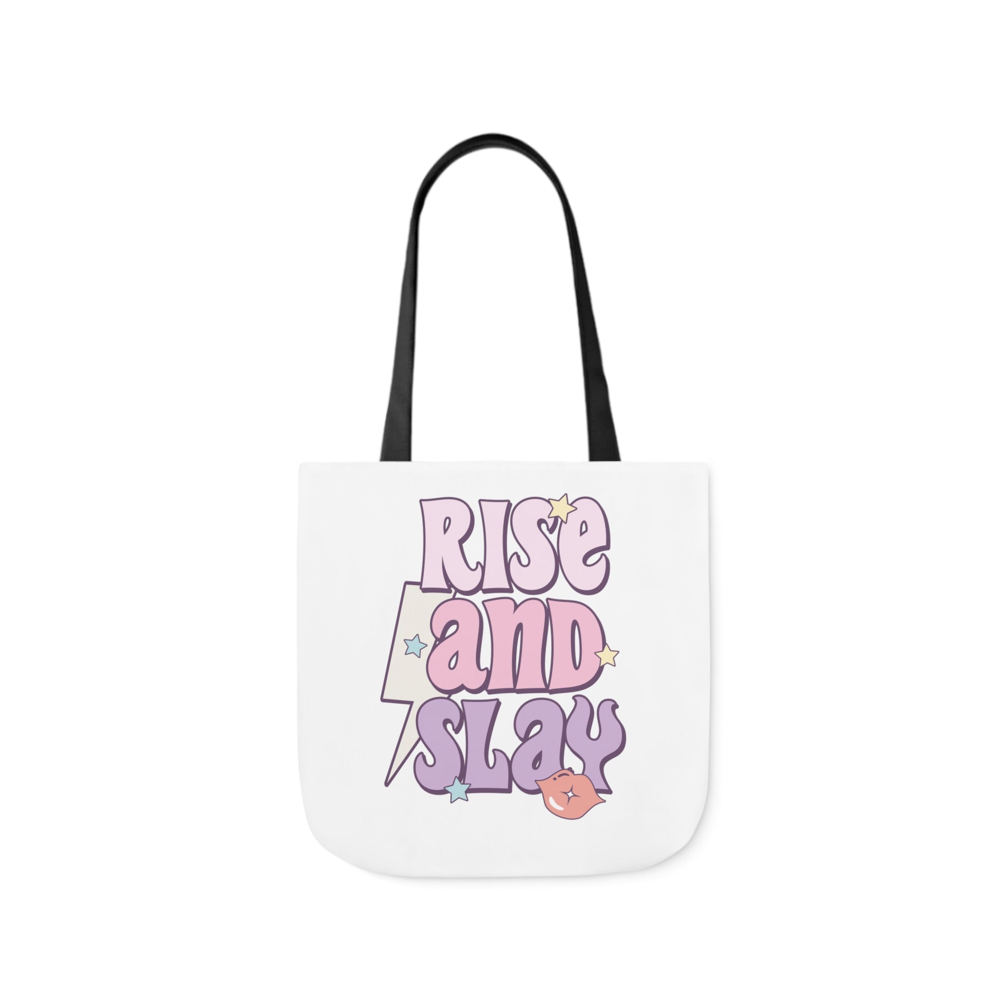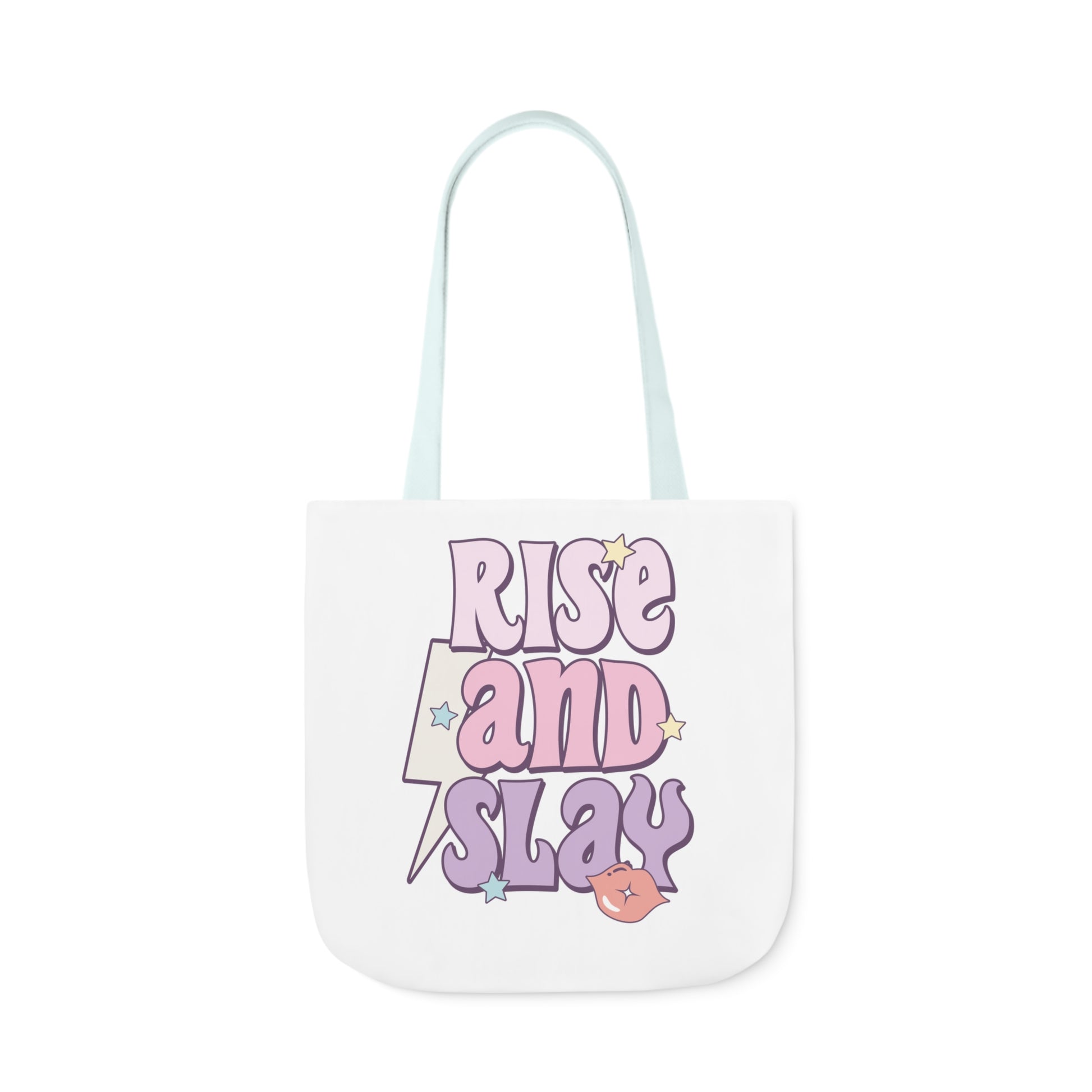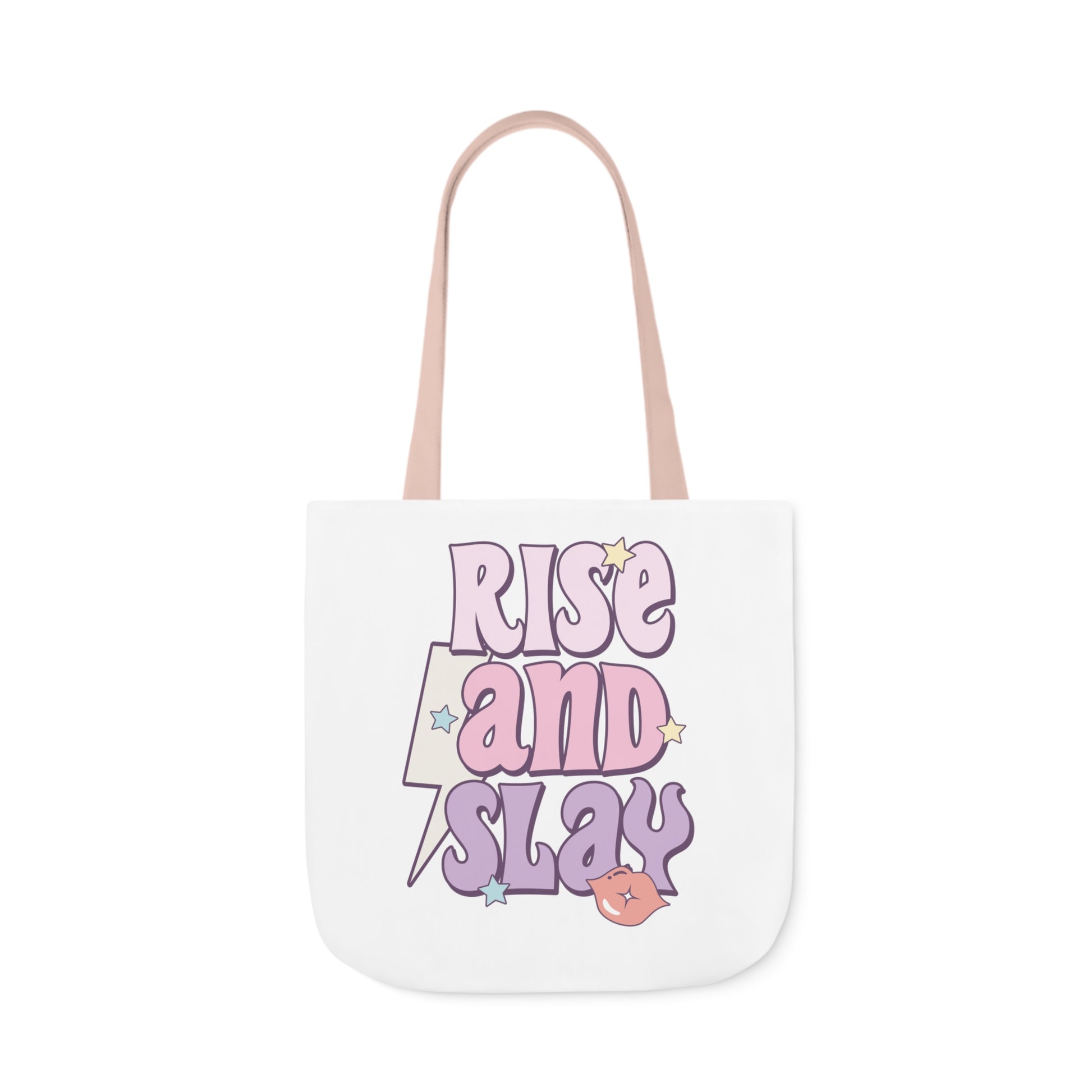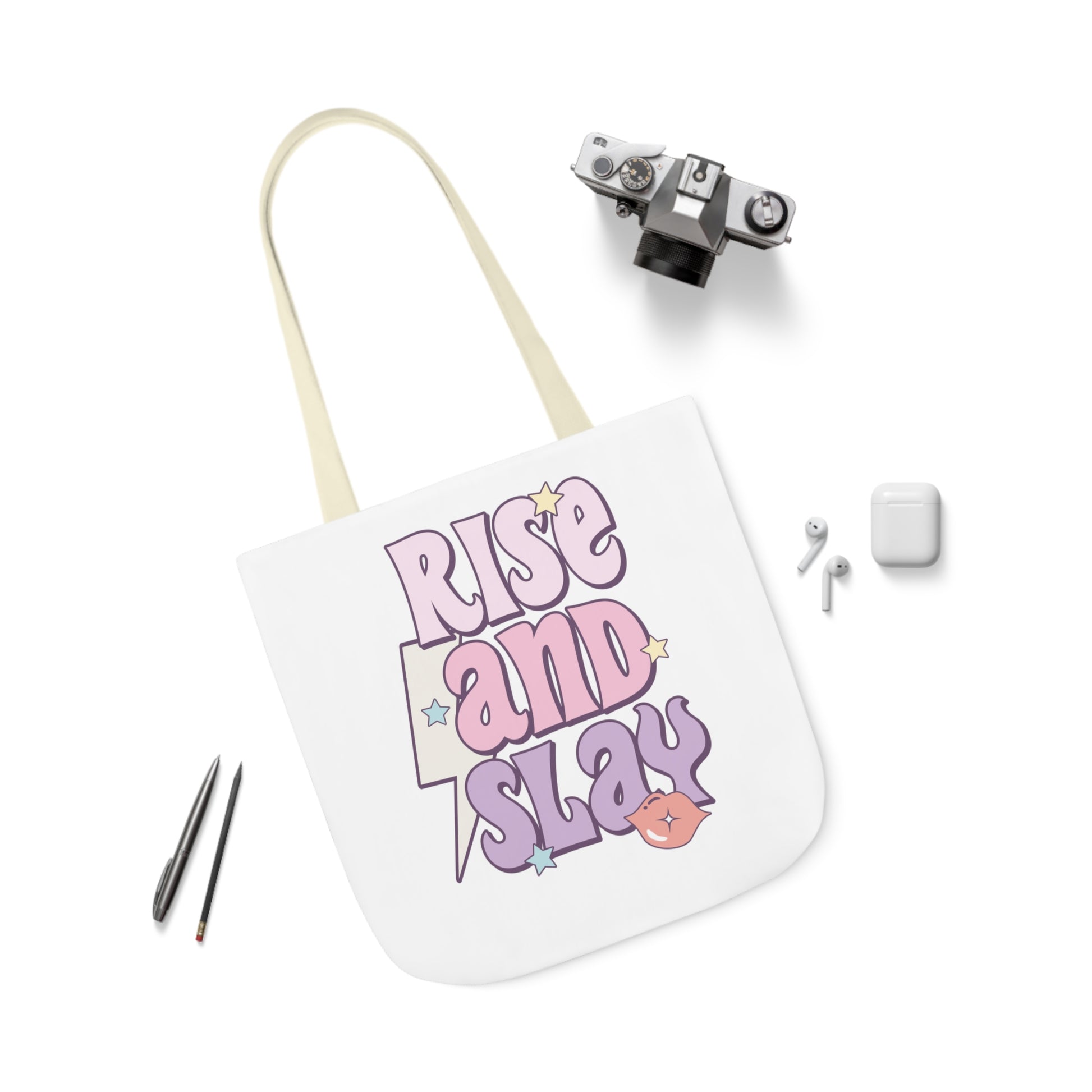 Canvas Tote Bag, 5-Color Straps, 3 Sizes, Rise and Slay, Cute Saying Bag