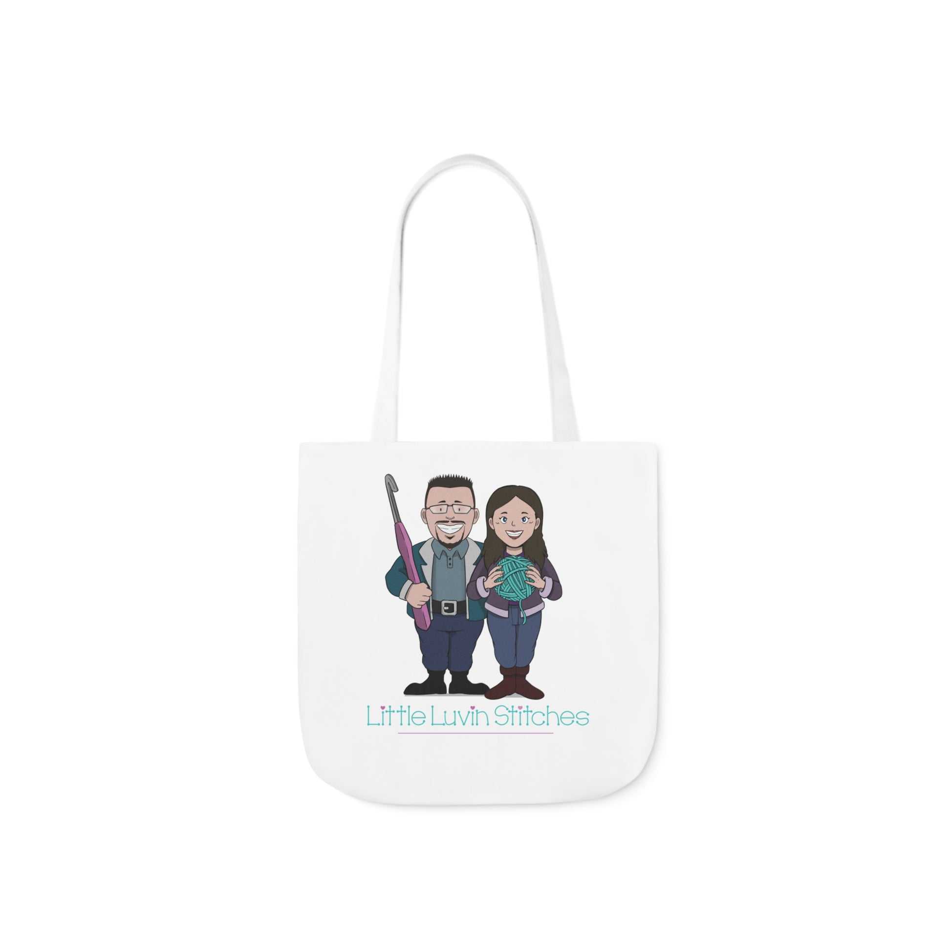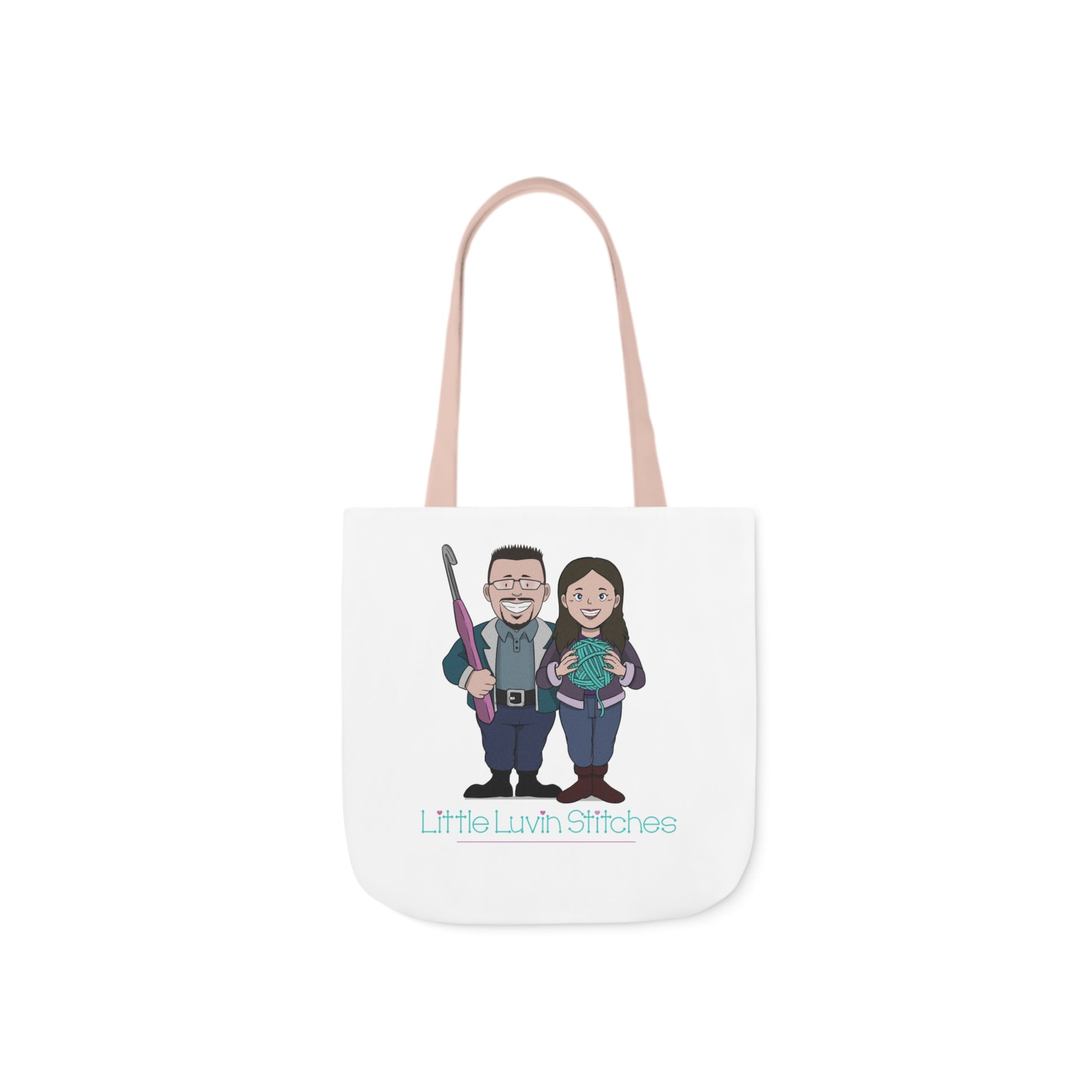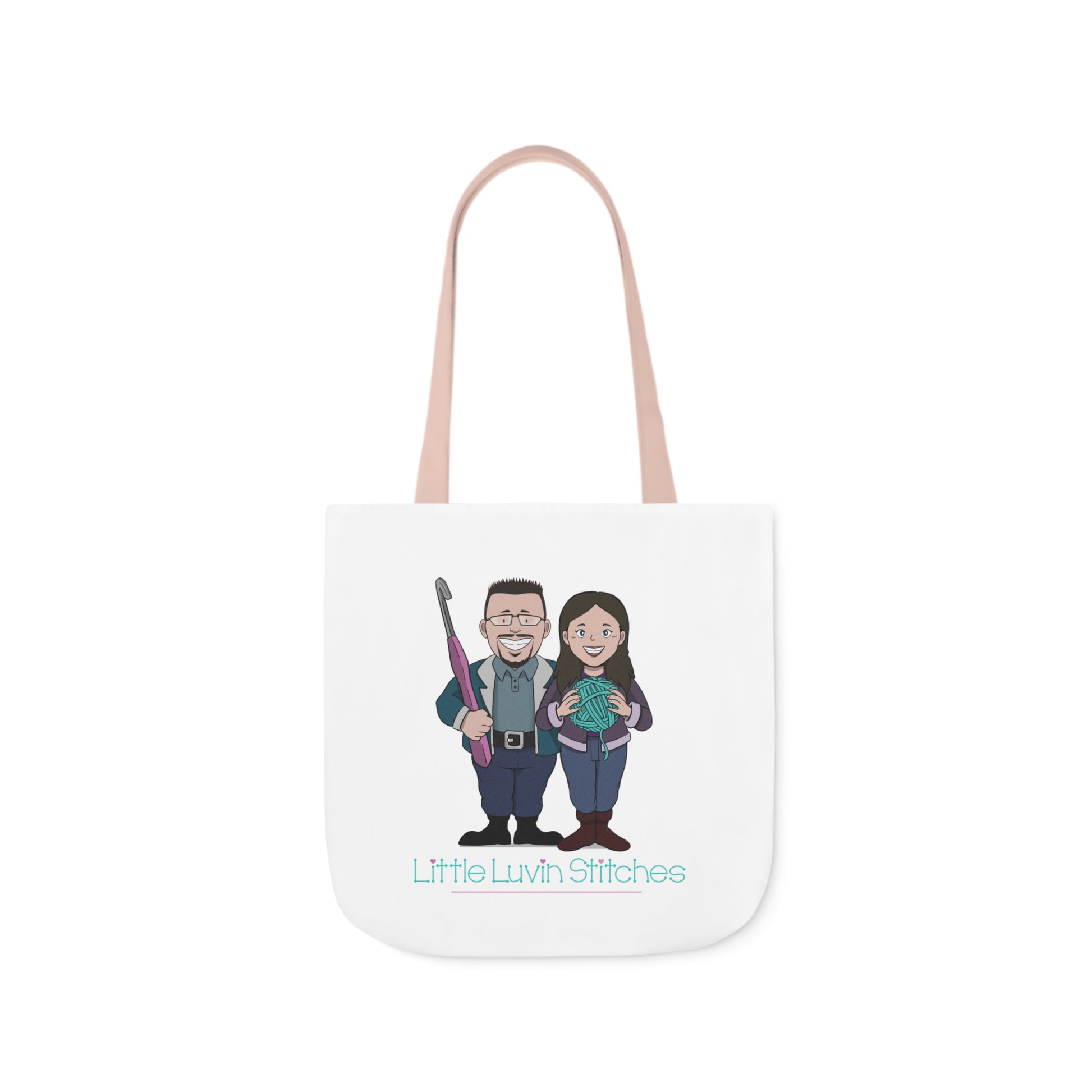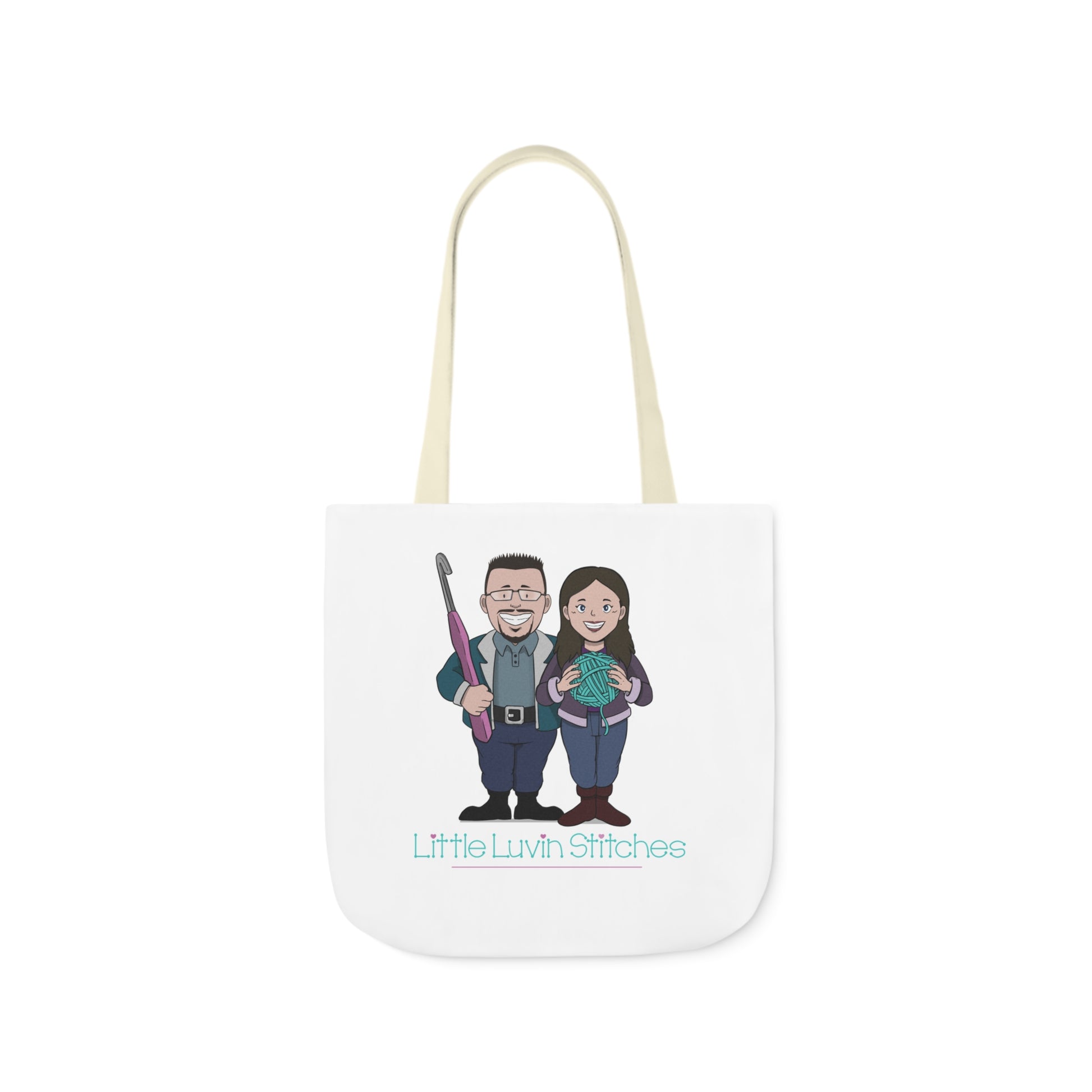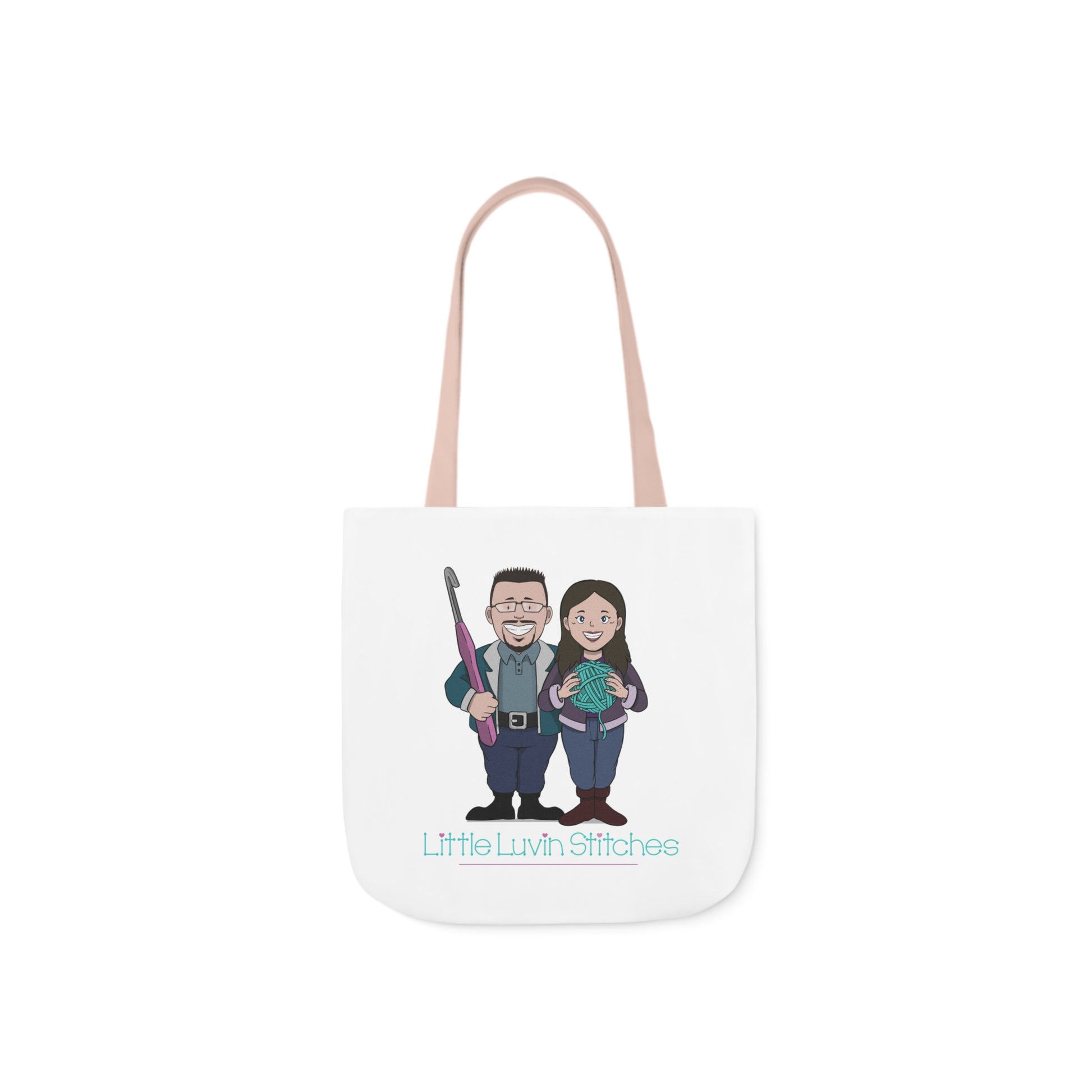 Crochet Couple Canvas Tote Bag, 5-Color Straps, 3 Sizes