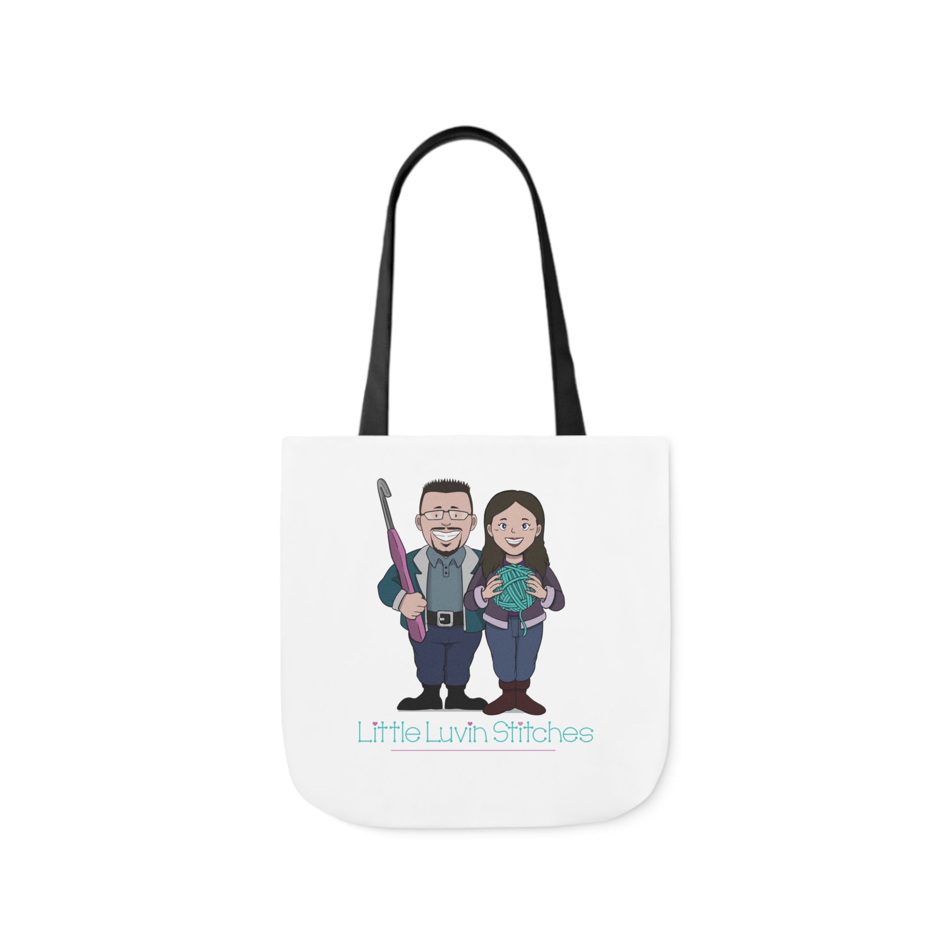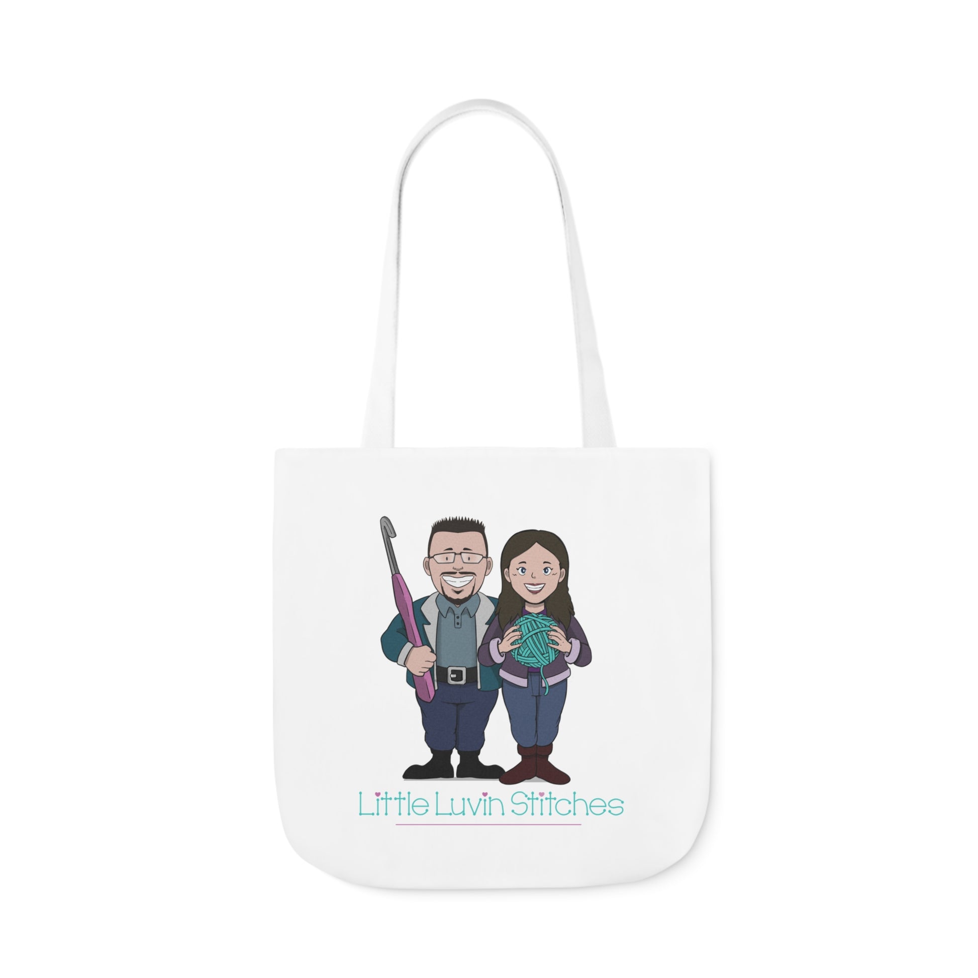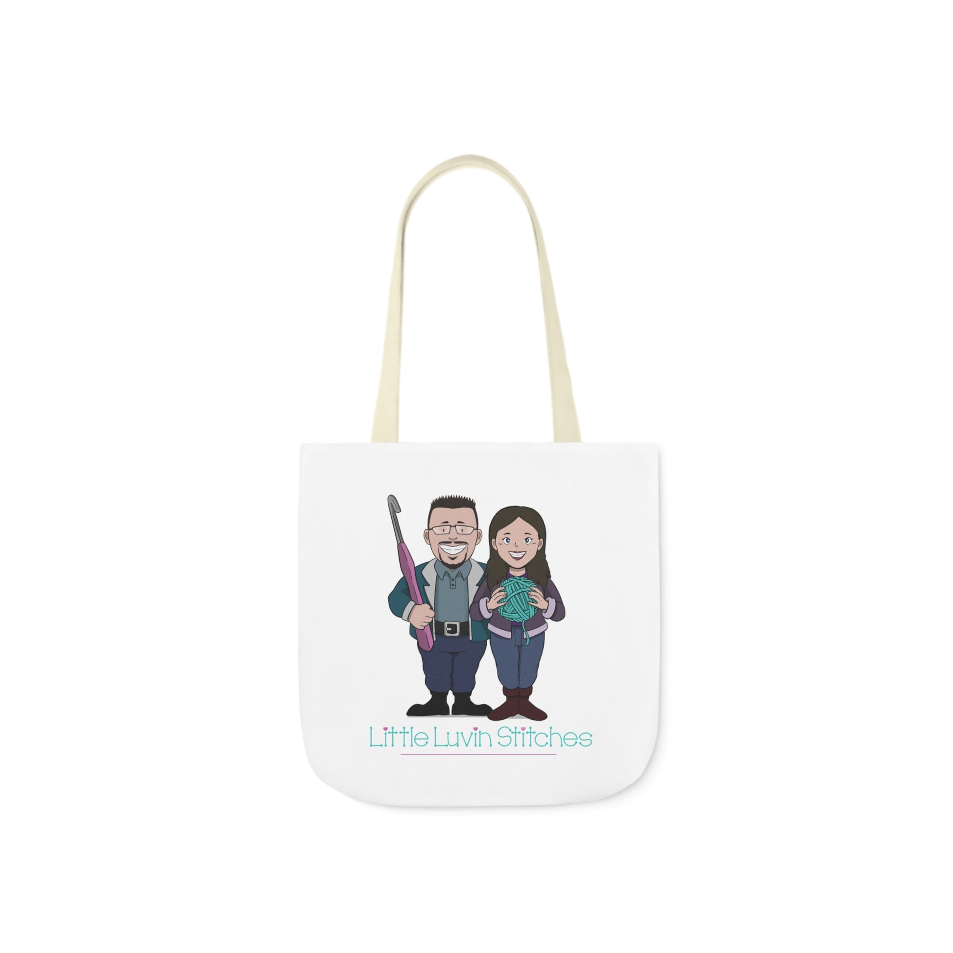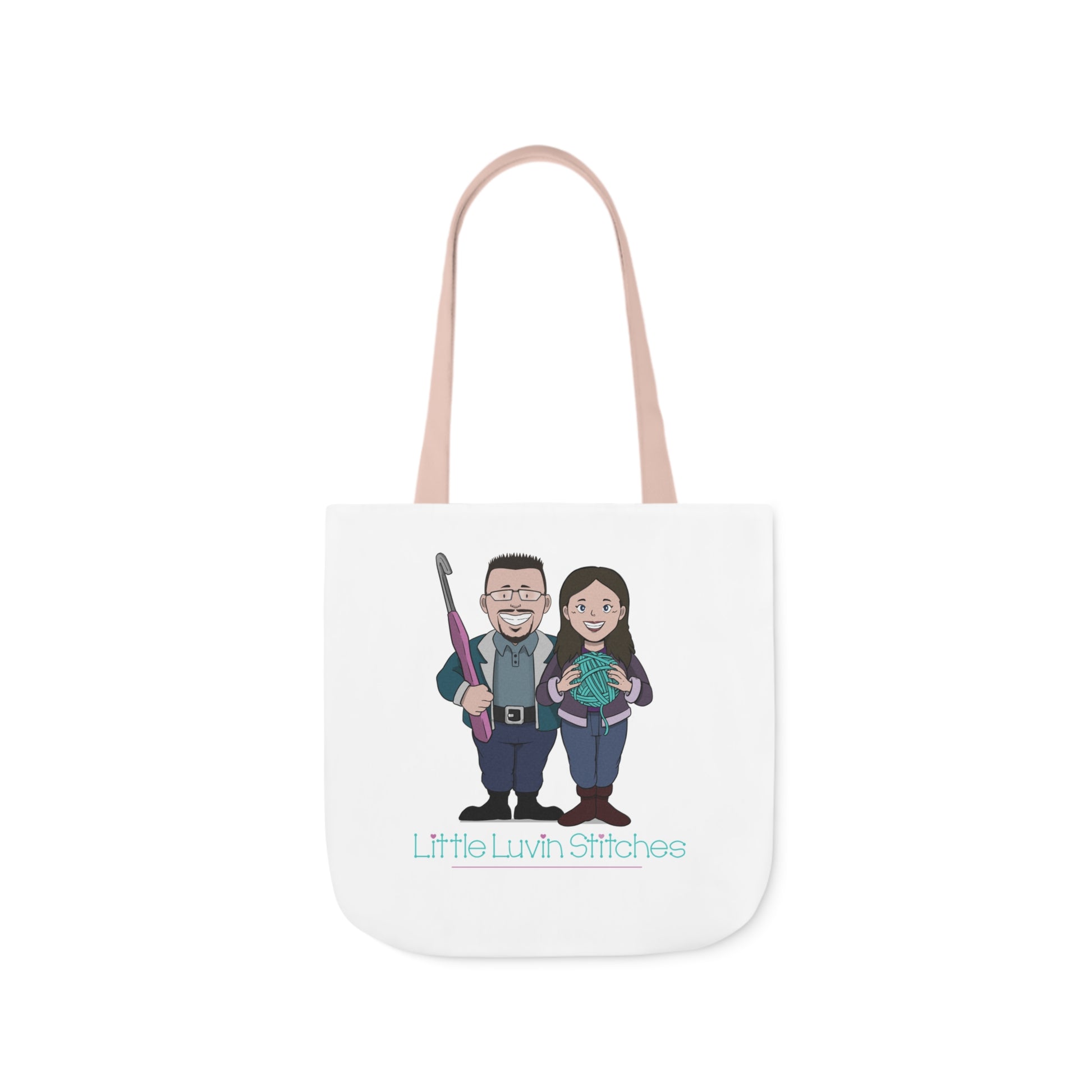 Crochet Couple Canvas Tote Bag, 5-Color Straps, 3 Sizes