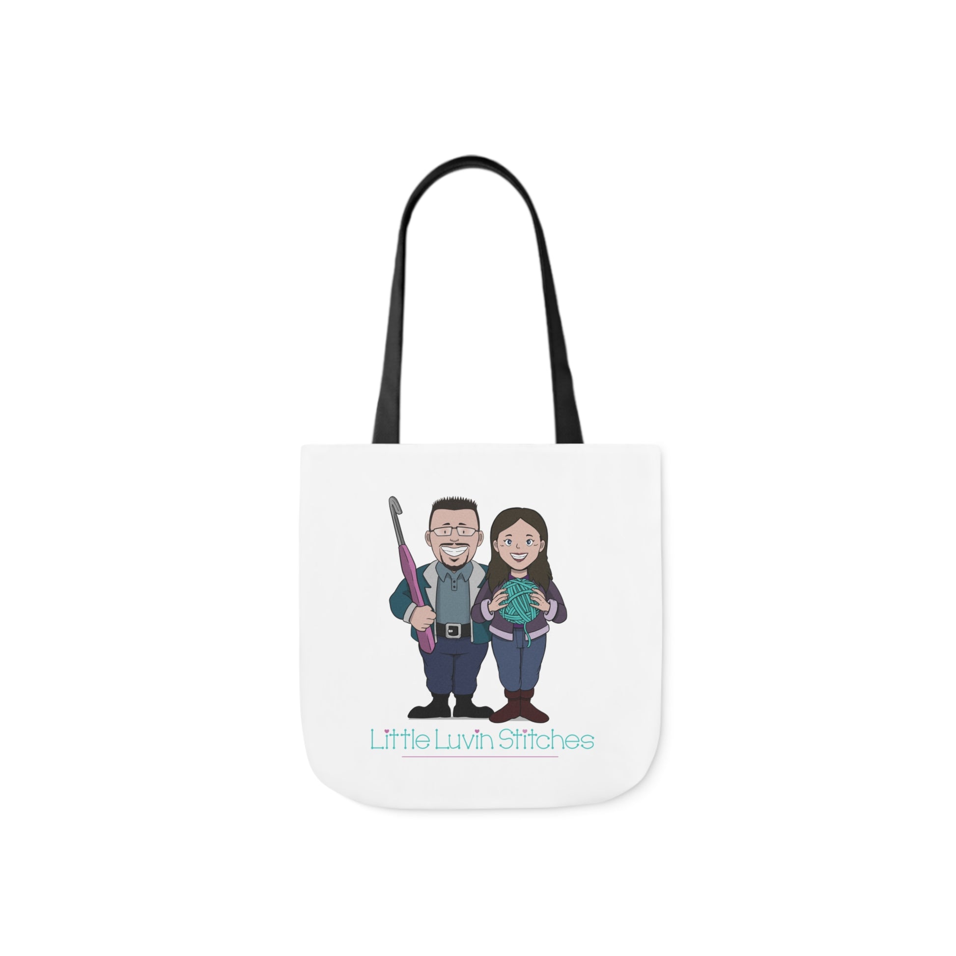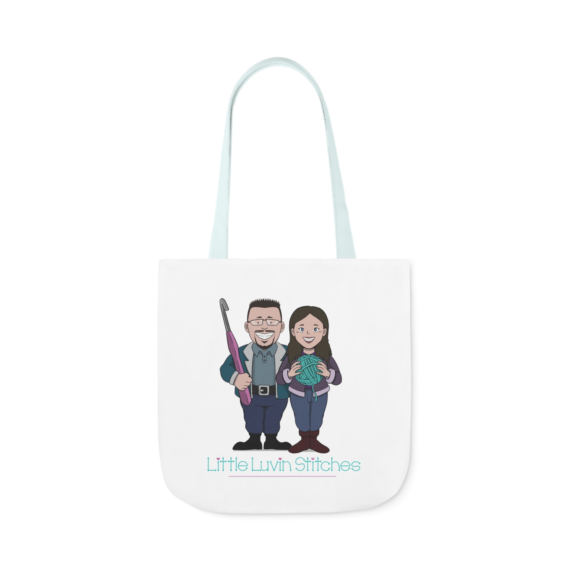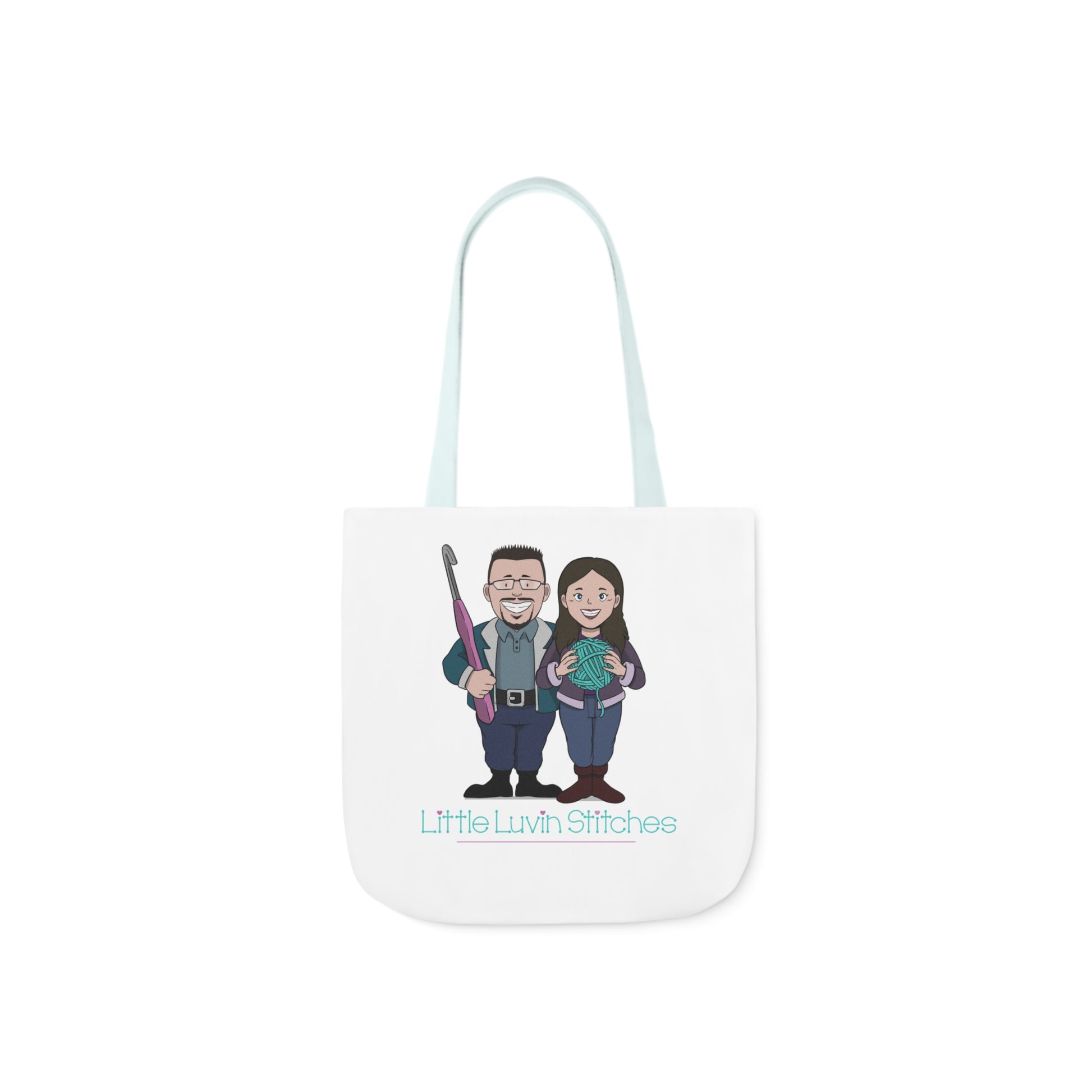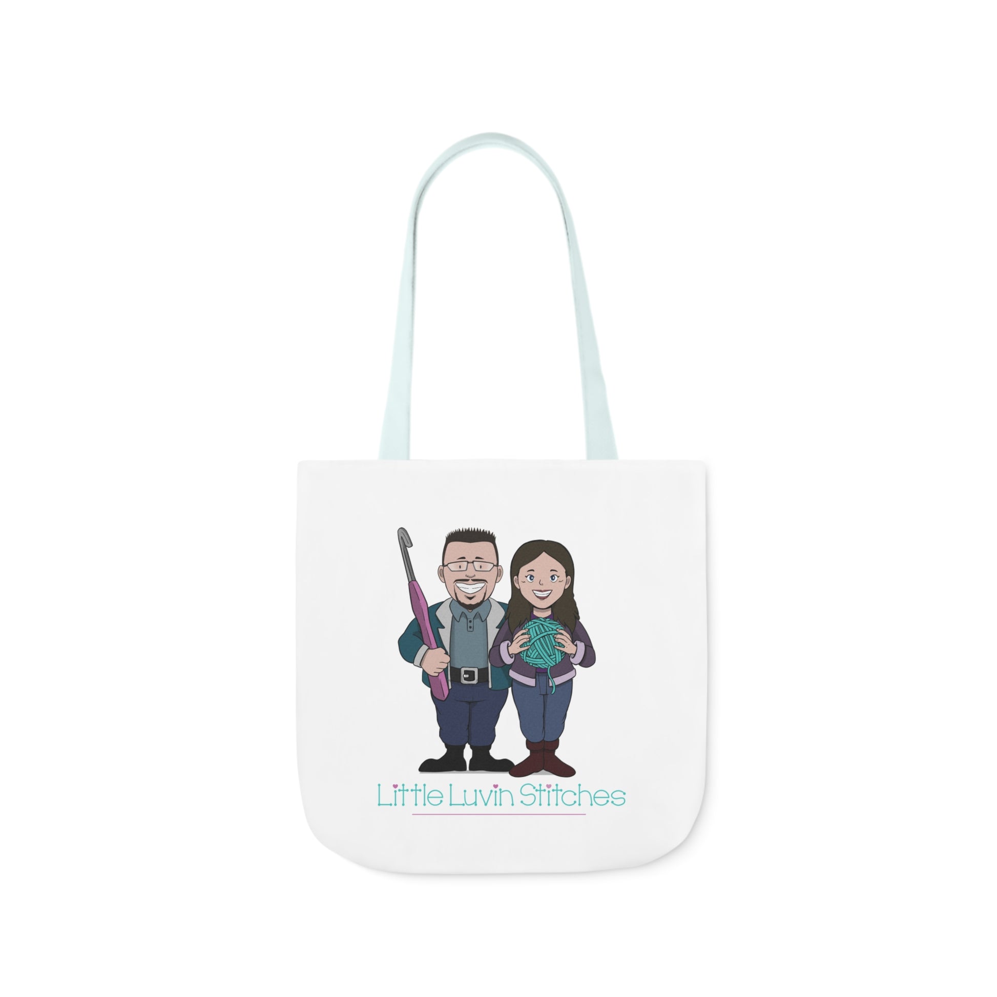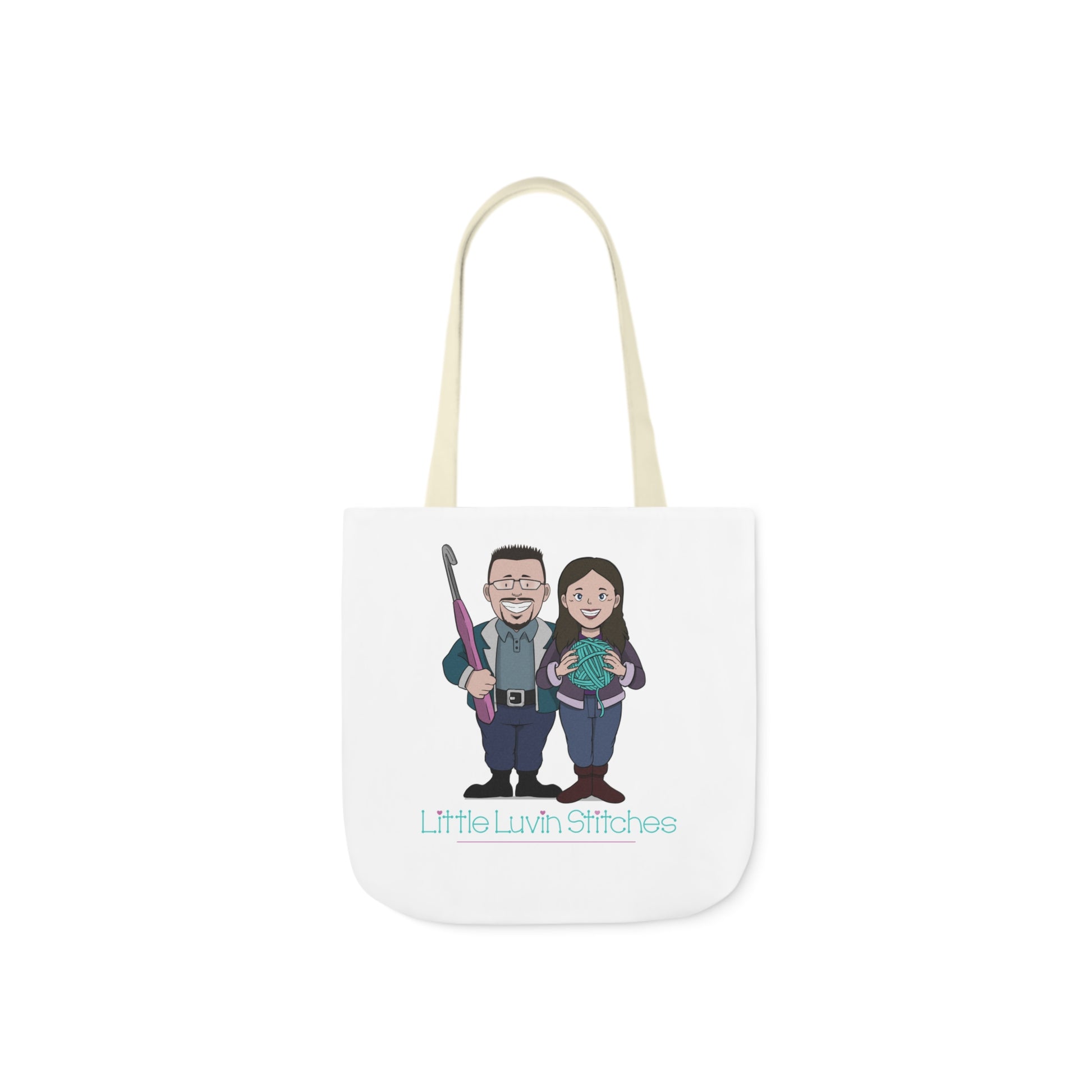 Crochet Couple Canvas Tote Bag, 5-Color Straps, 3 Sizes