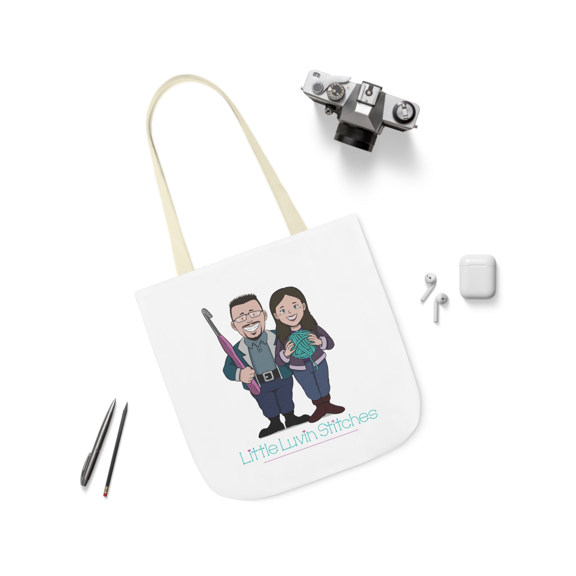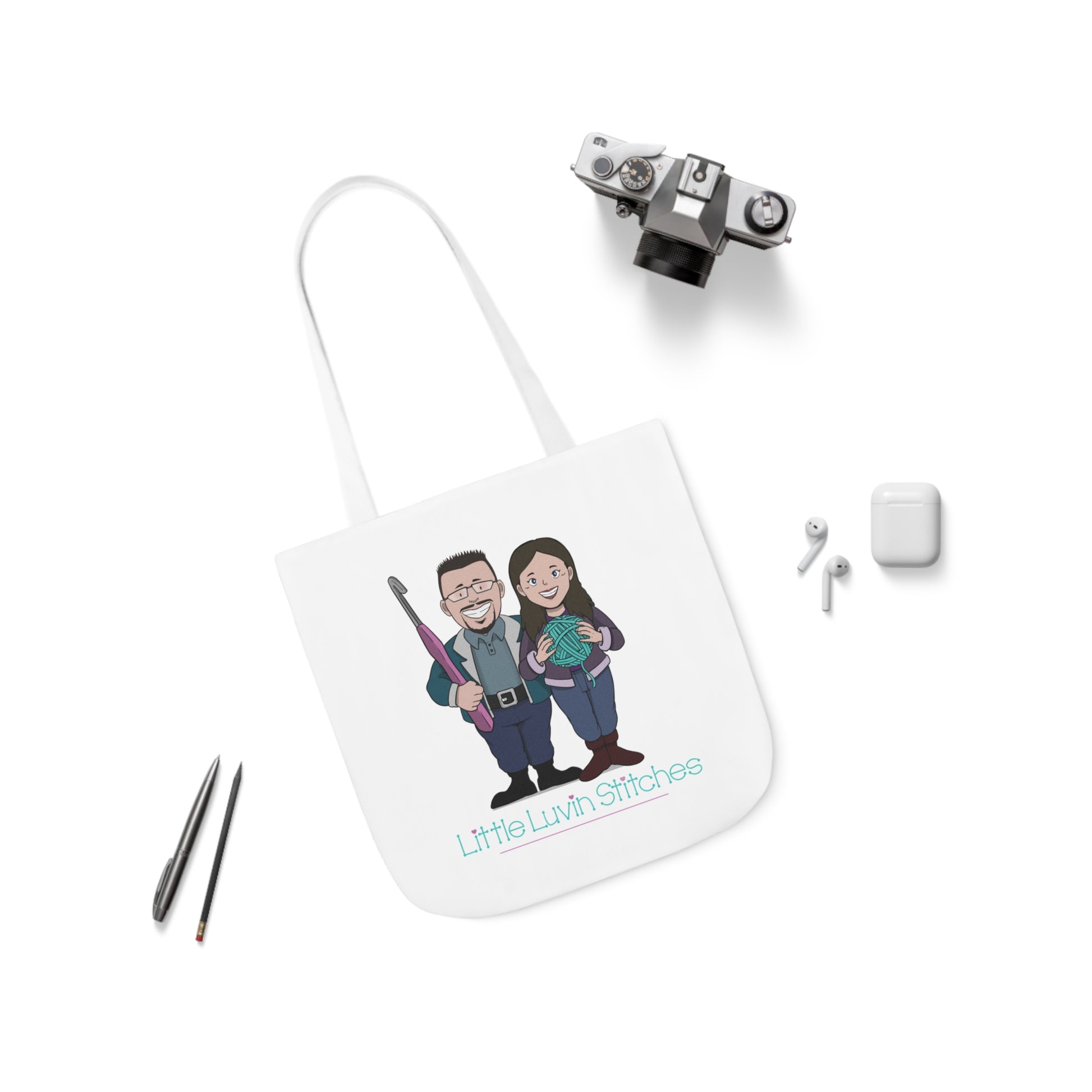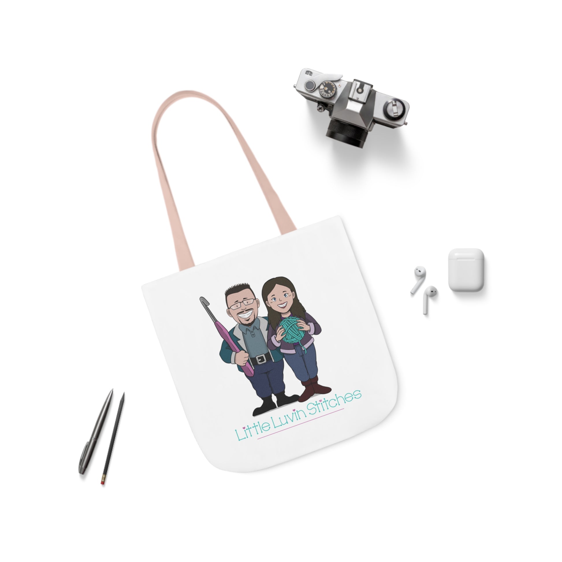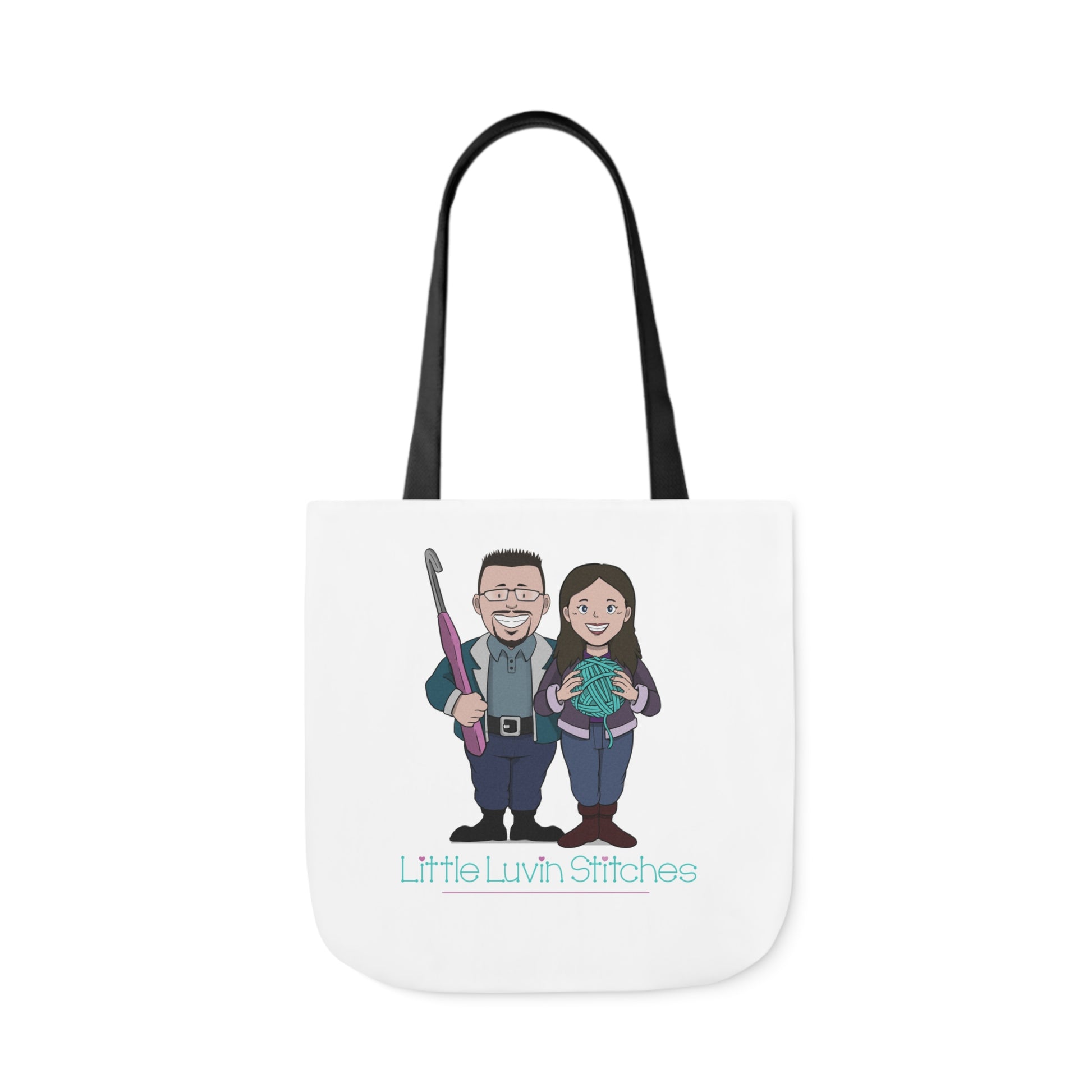Crochet Couple Canvas Tote Bag, 5-Color Straps, 3 Sizes