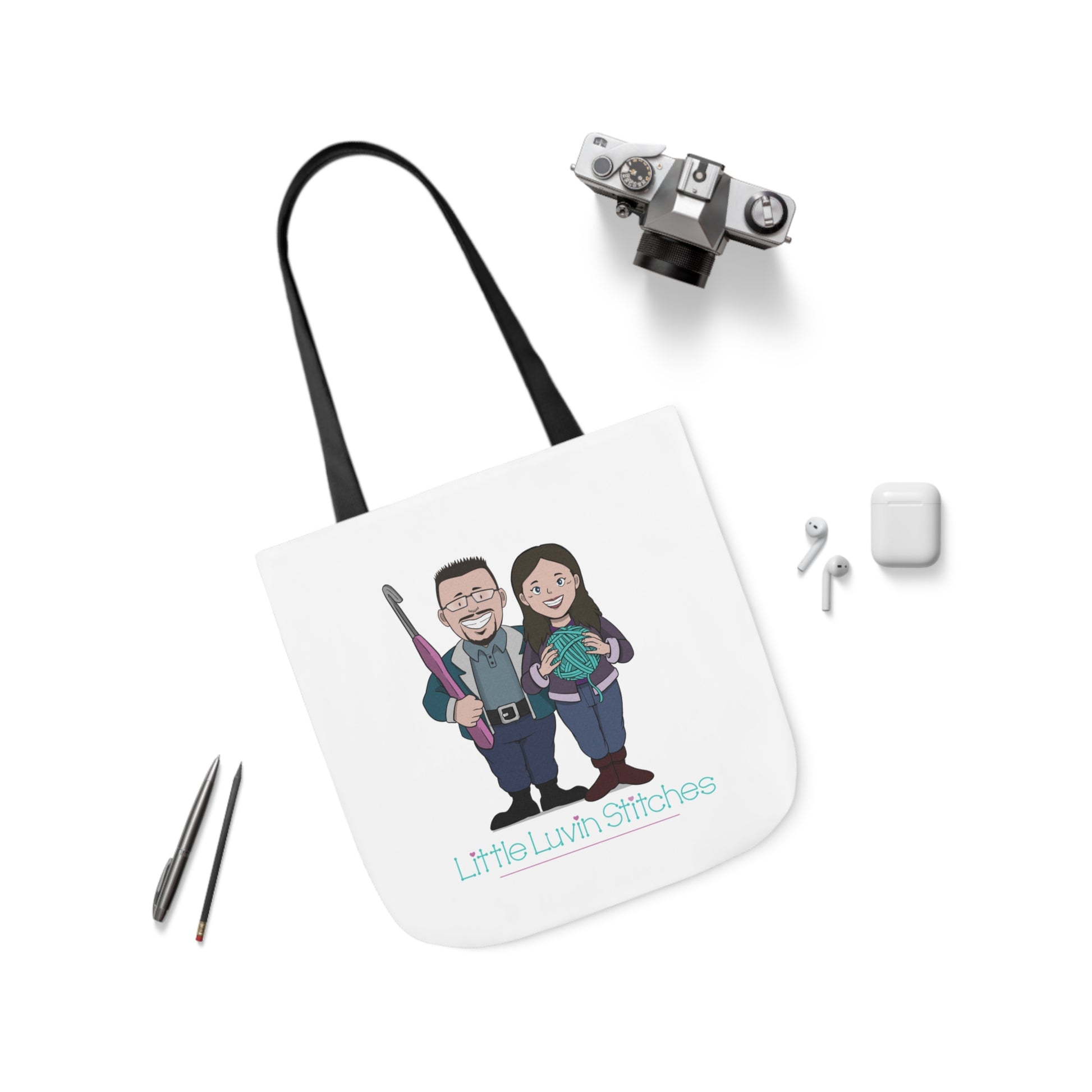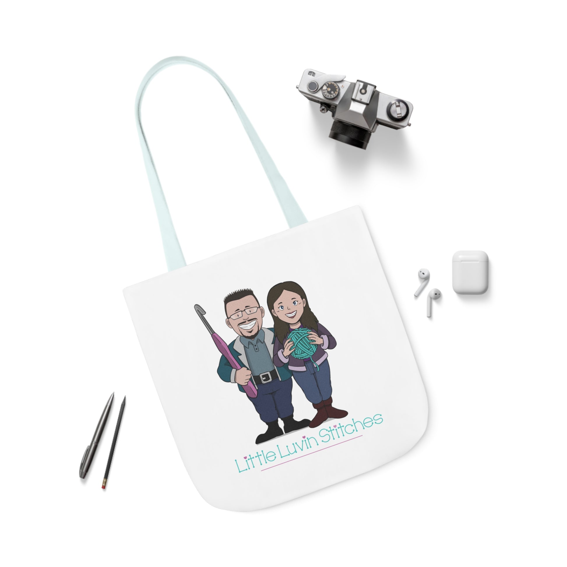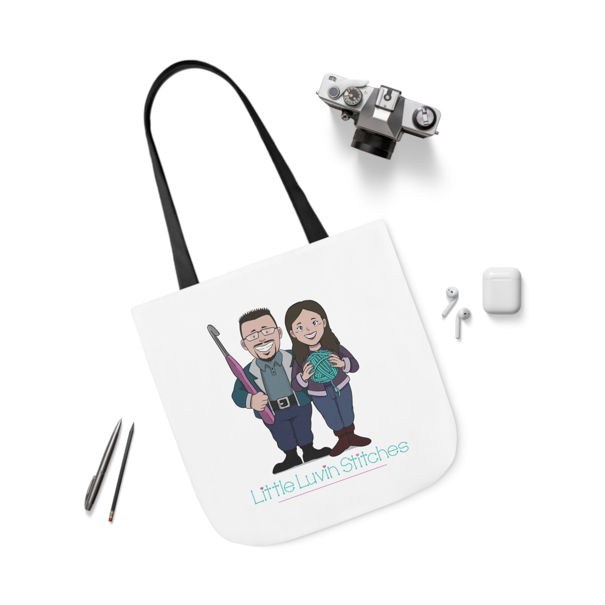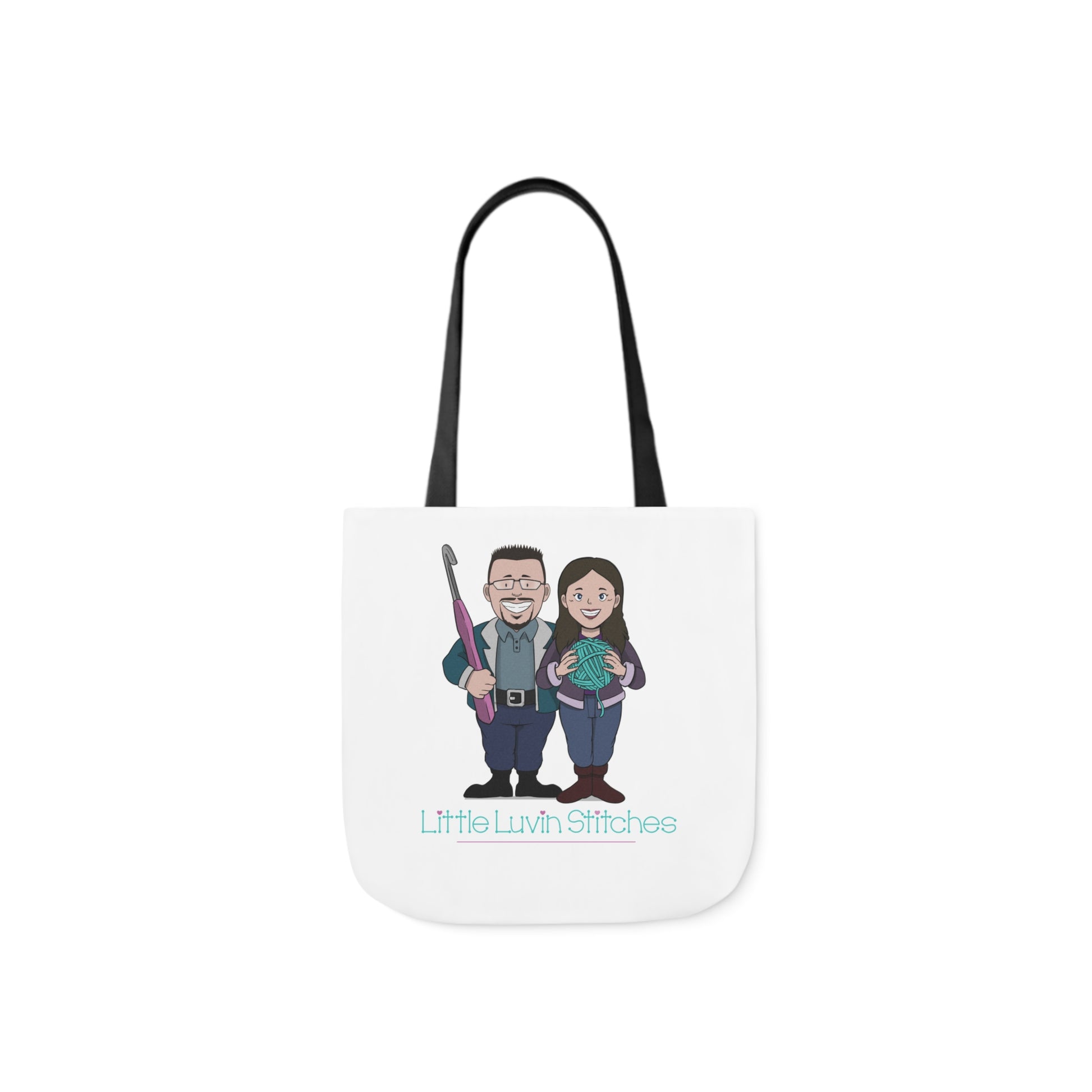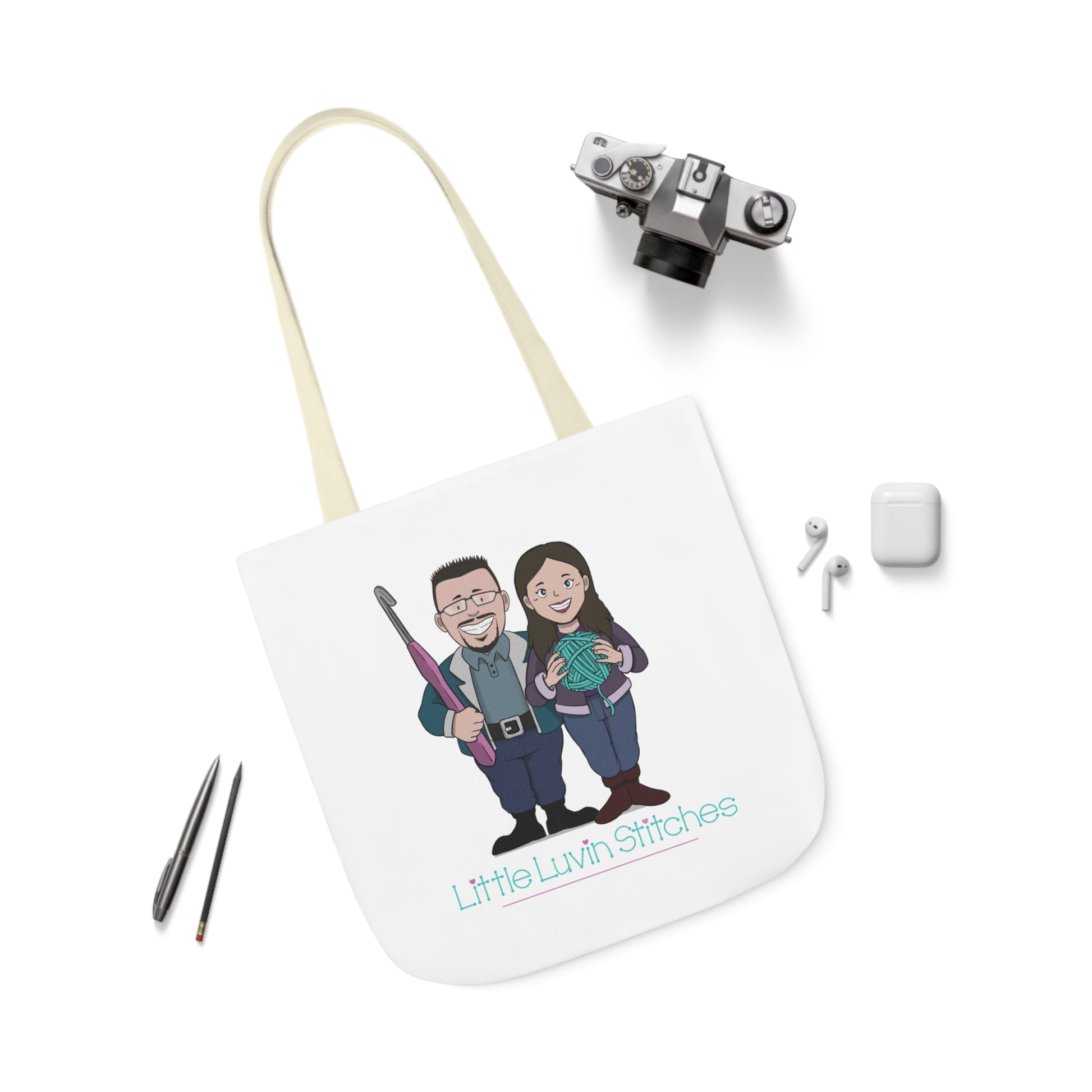 Crochet Couple Canvas Tote Bag, 5-Color Straps, 3 Sizes