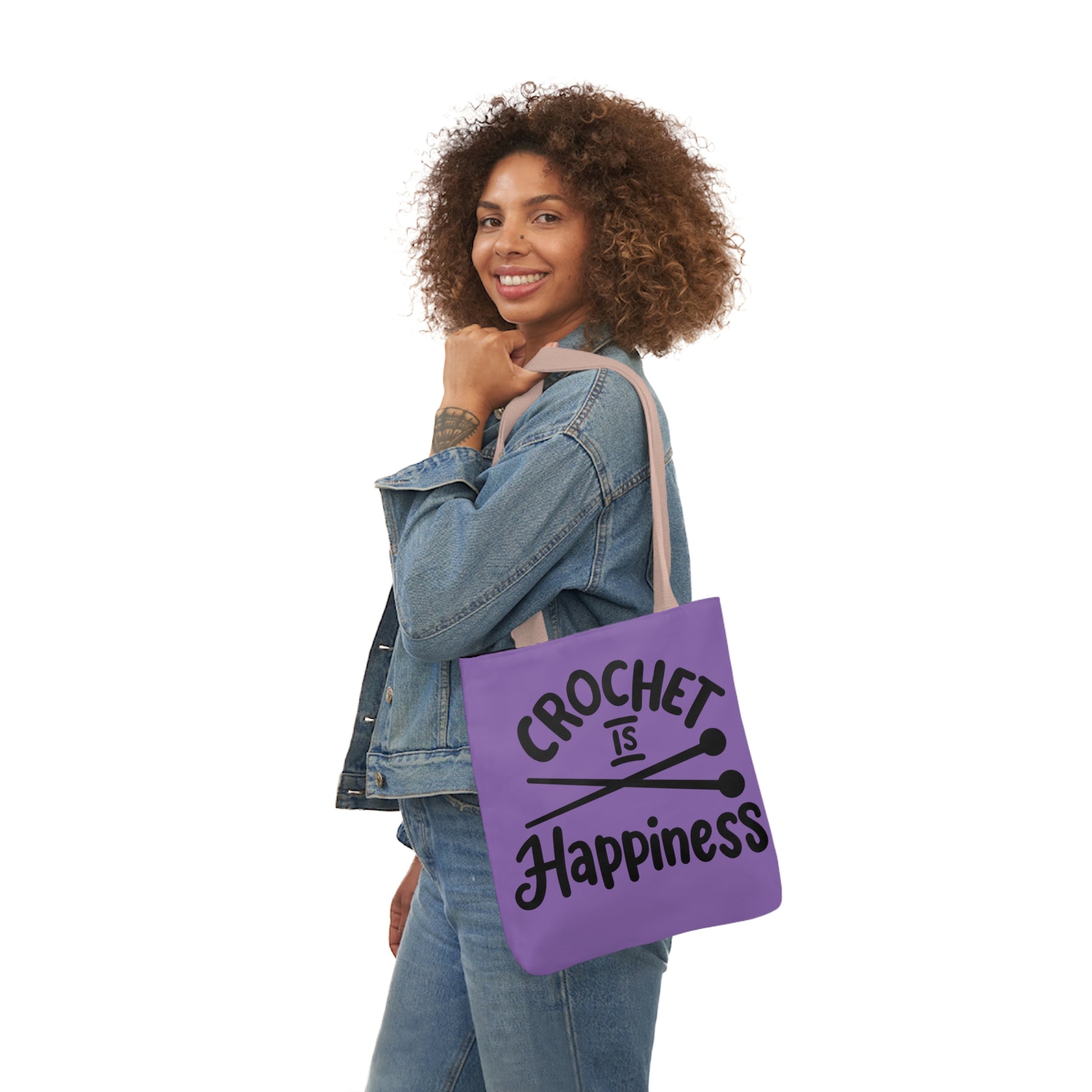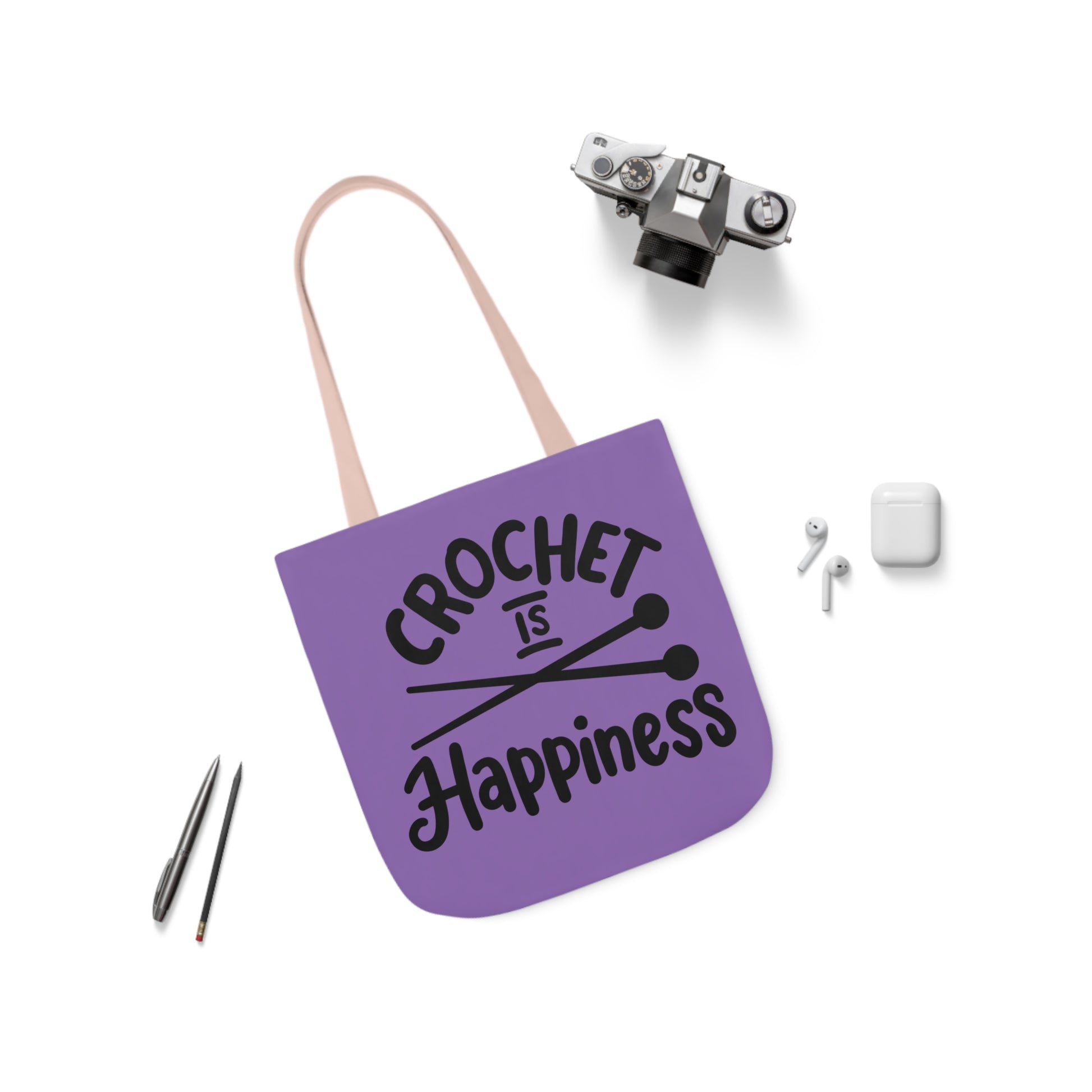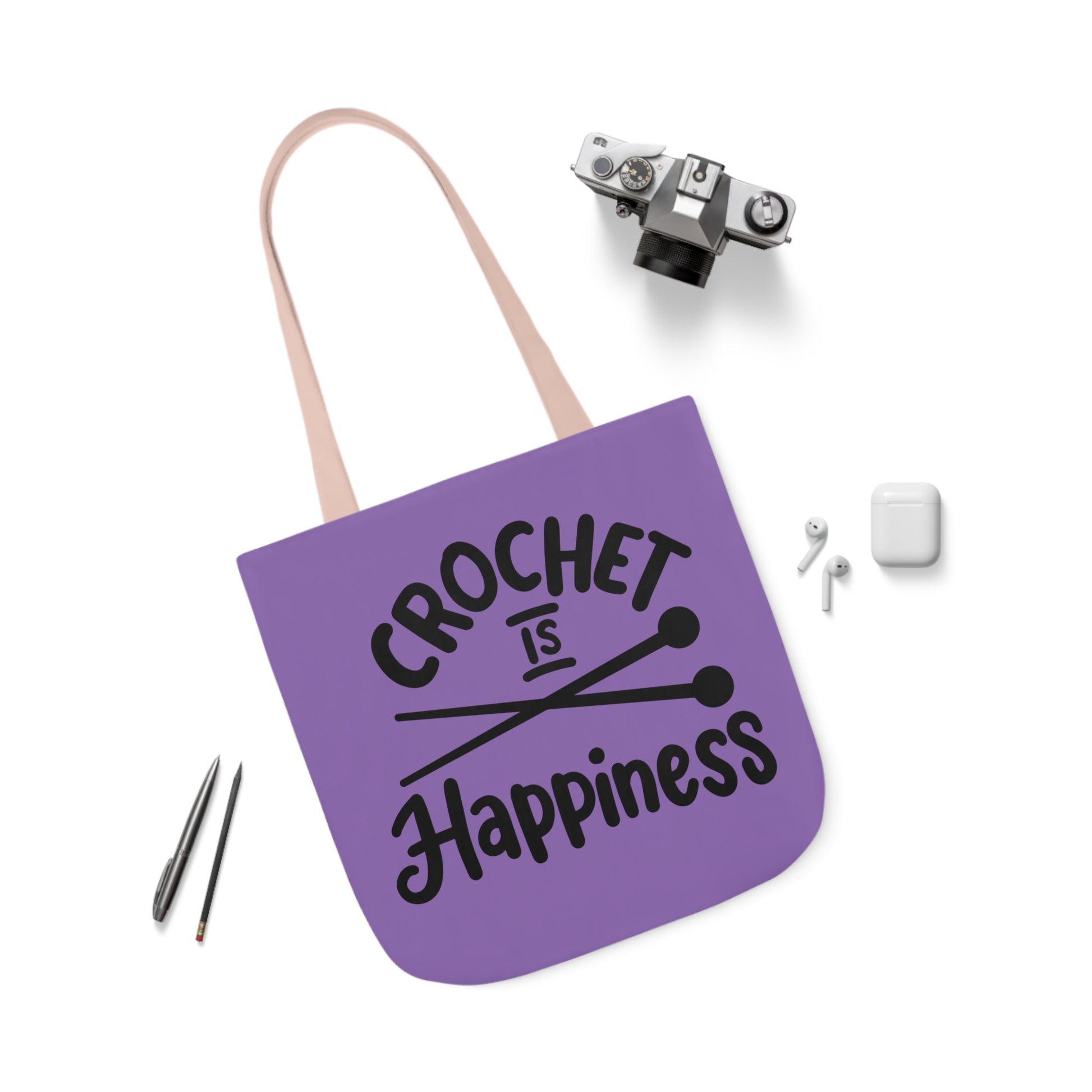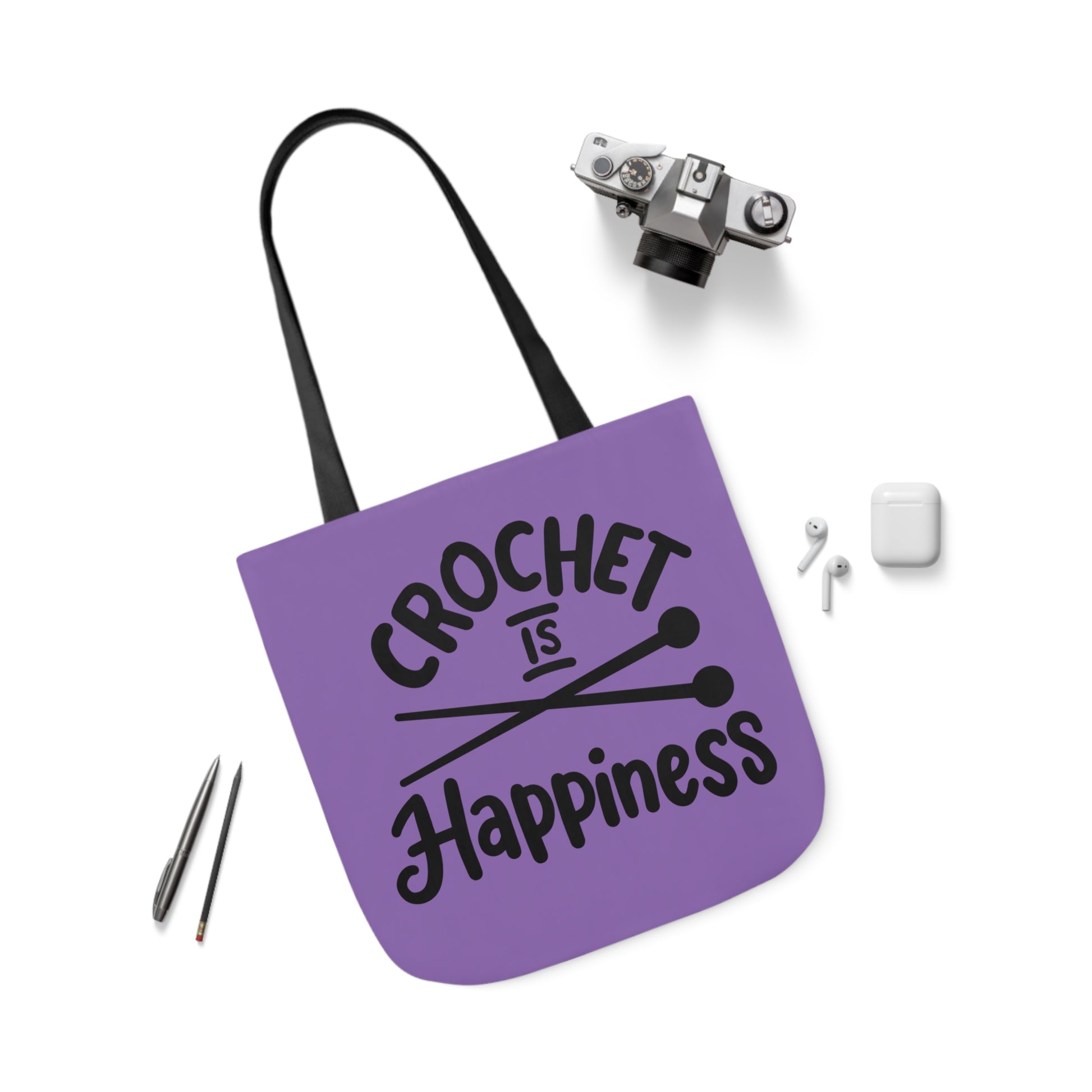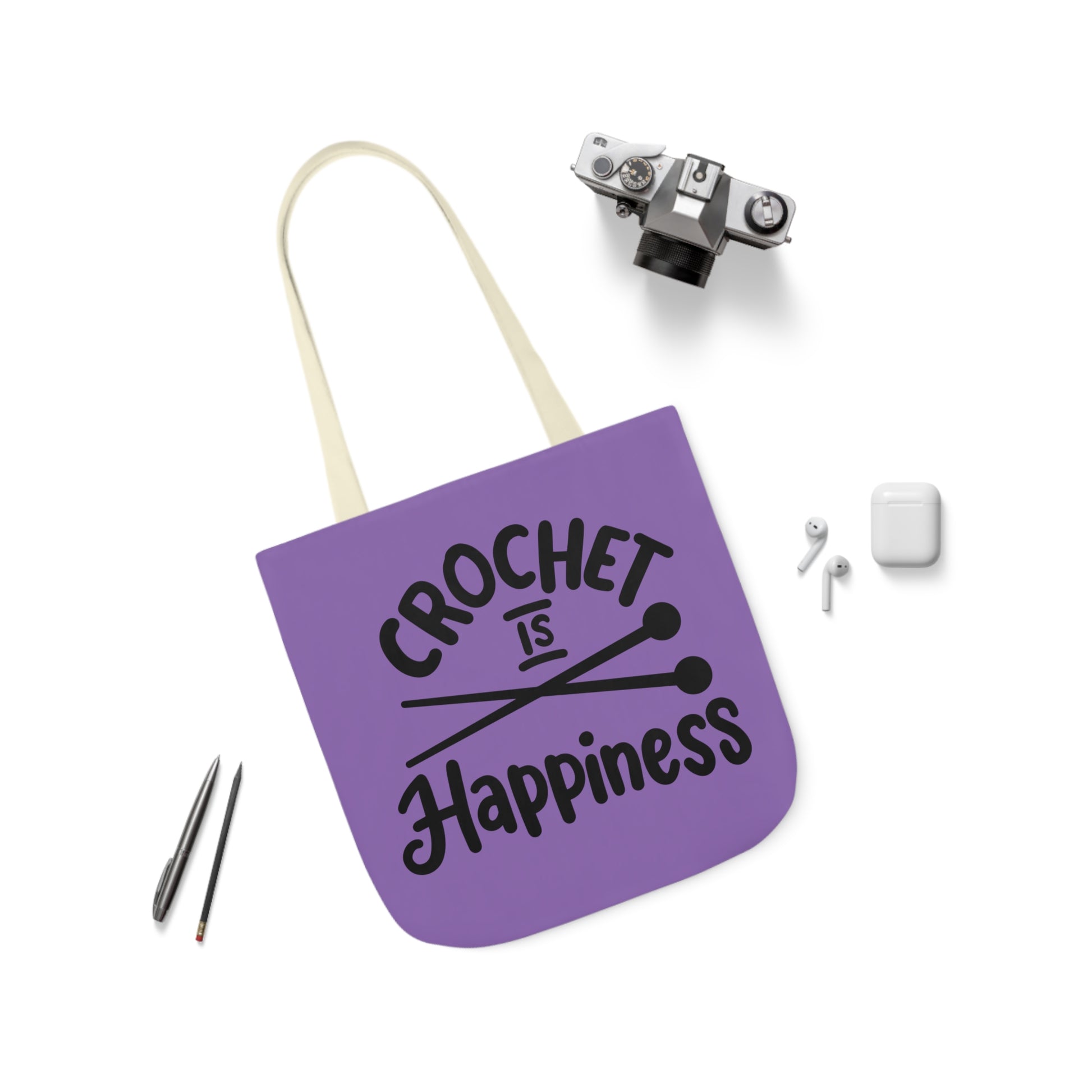 Crochet is Happiness Canvas Tote Bag, 5-Color Straps, 3 Sizes