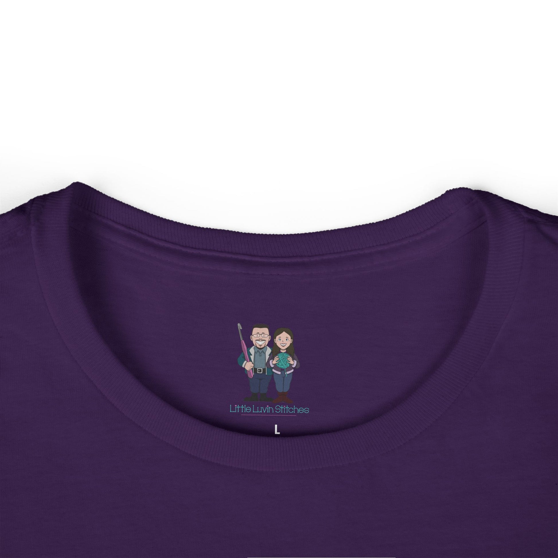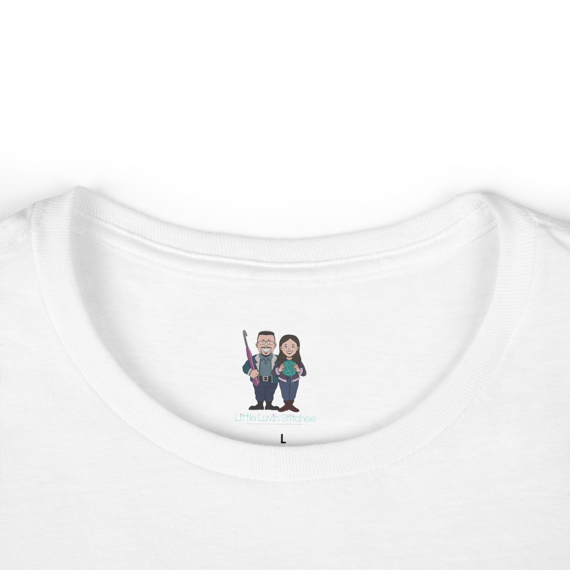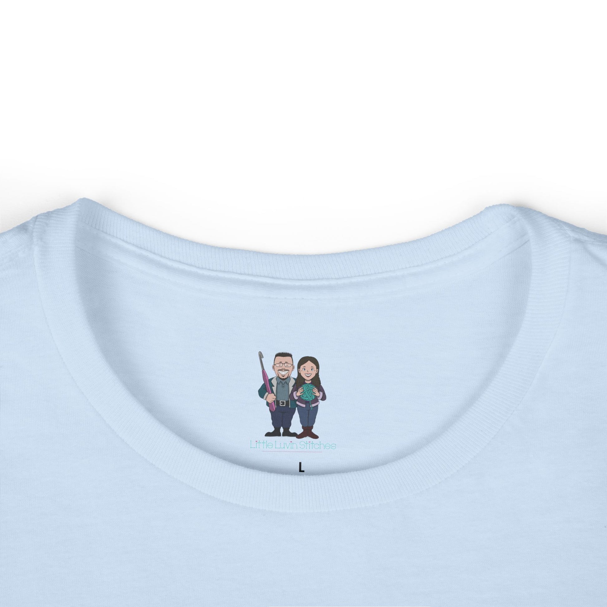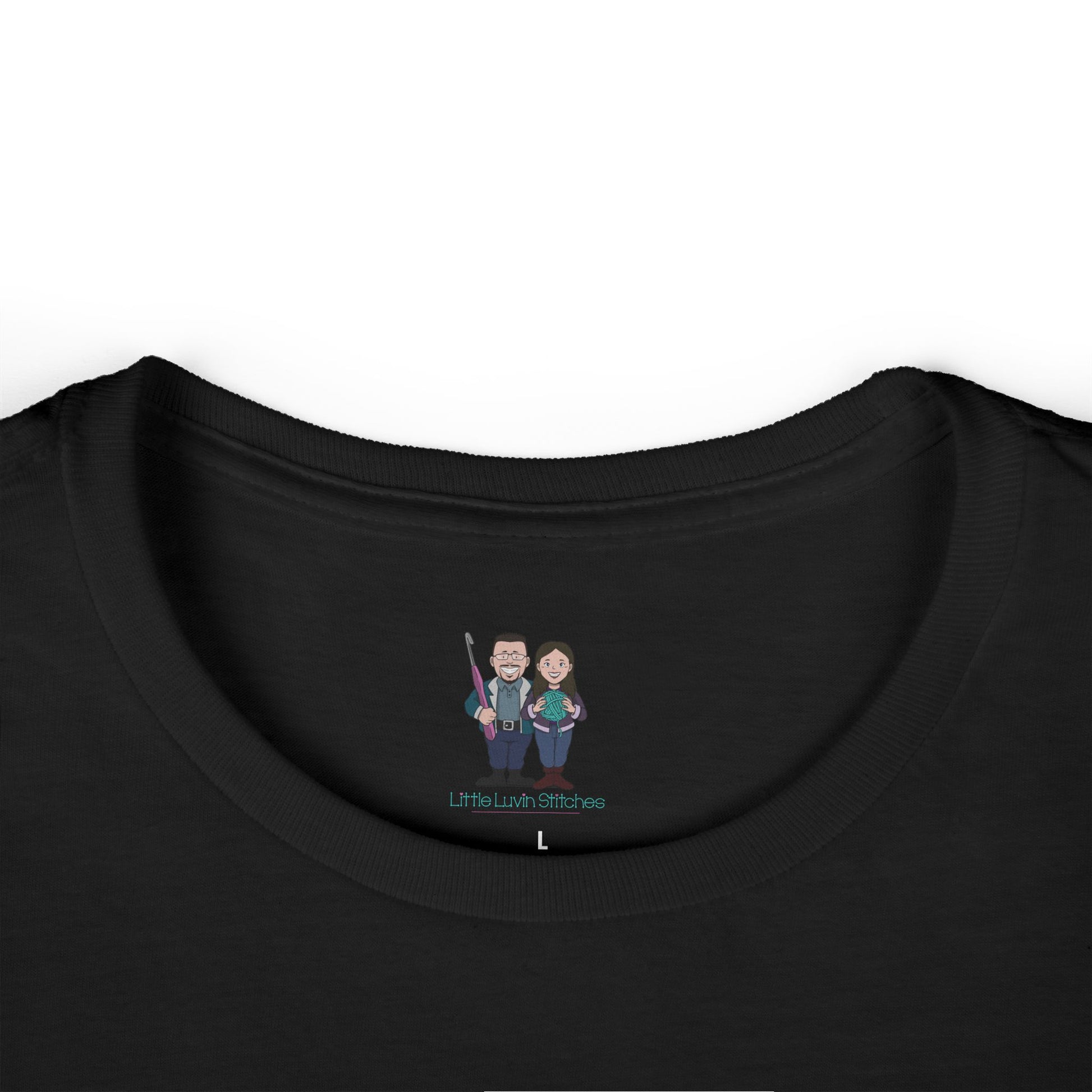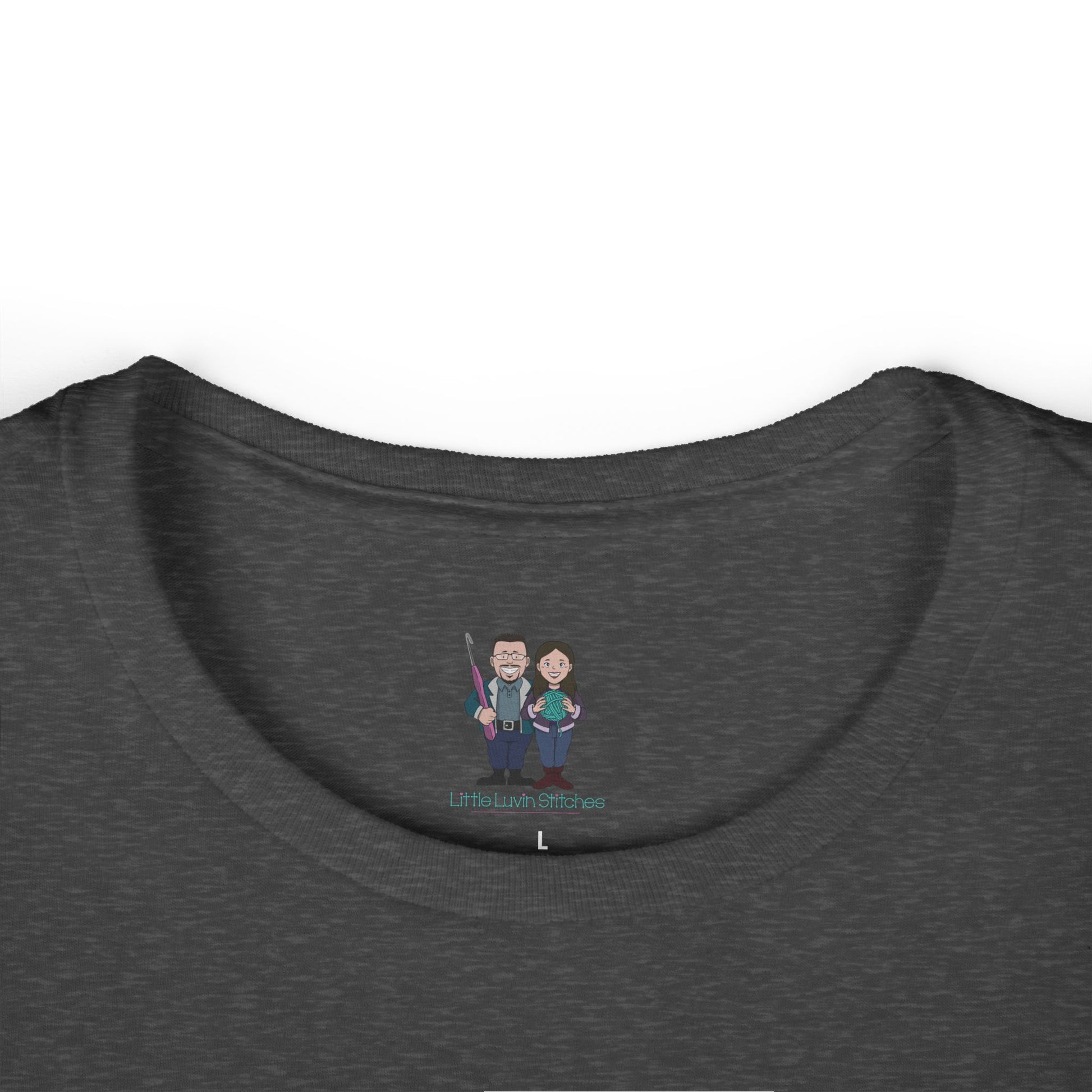 This charming women's soft-style t-shirt, adorned with a humorous crochet saying, is a fun way to express yourself in the most comfortable way possible. Made from very soft materials, this feminine take on the classic tee is 100% cotton for all solid colors.The sleeves are shortened to reveal more shoulders to make this tee scream with femininity. The shoulders are taped with twill for improved durability, and ribbed knitting reinforces the collar to prevent unsightly curling.